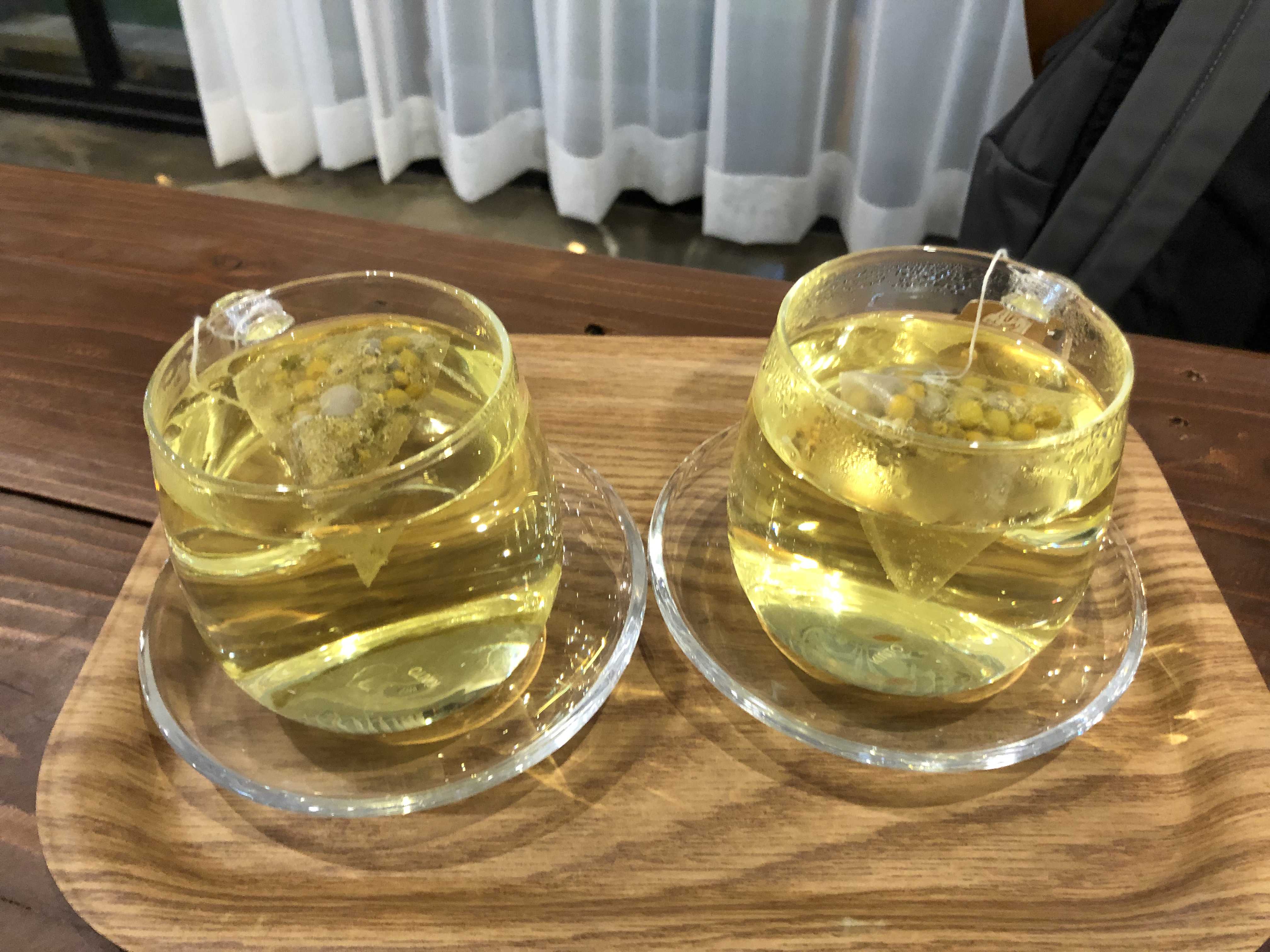 밤이 늦어 우리는 카모마일 티를 주문했다. 투명한 유리잔과 유리코스터에 담아 서빙해주셨다. 딱히 특별할 것 없는 카모마일 티. 코시국에 10시까지 카페에 있을 수 있는 것만으로 만족했다.
