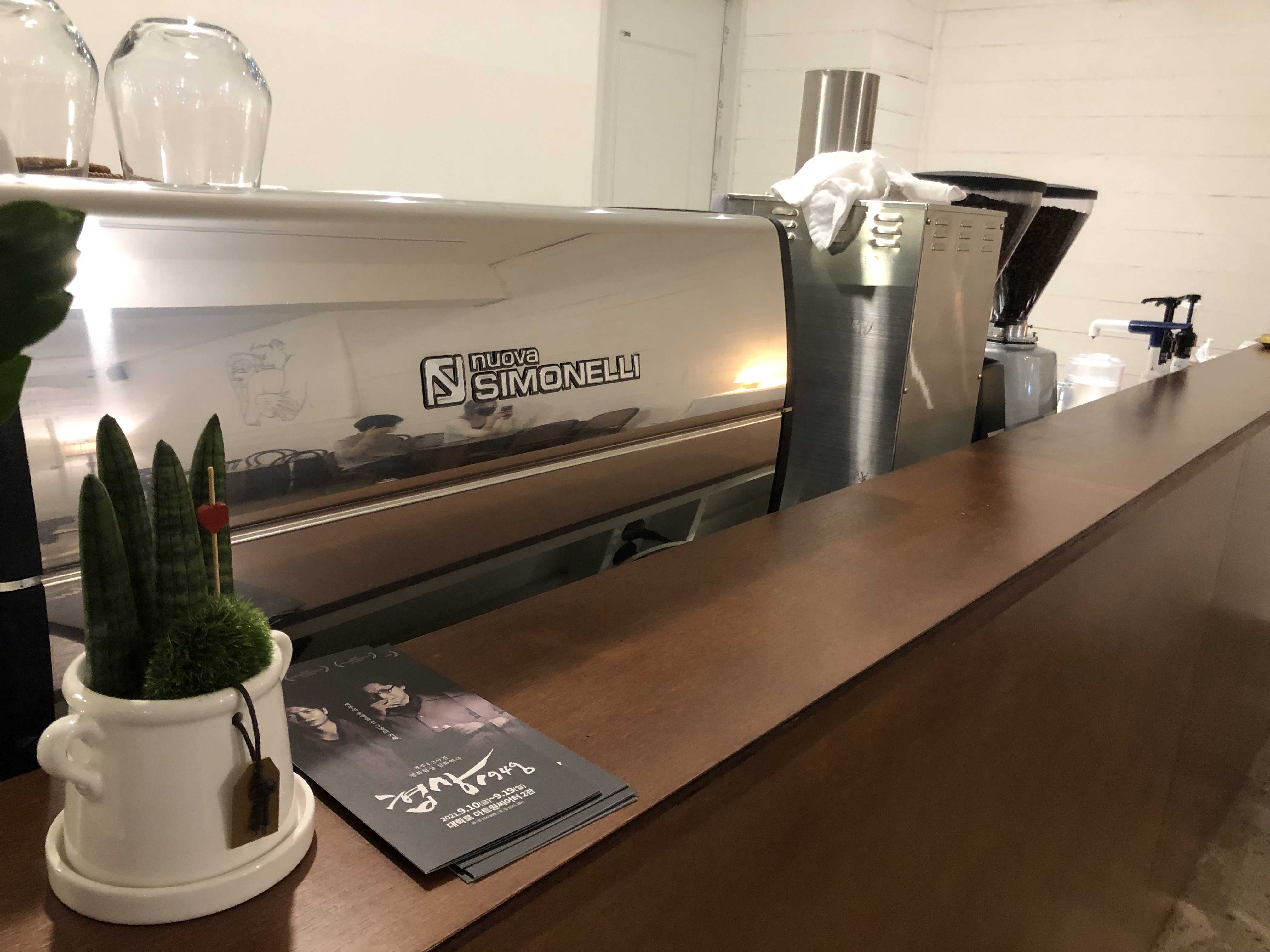 시모넬리 커피 머신으로 커피를 내려준다.