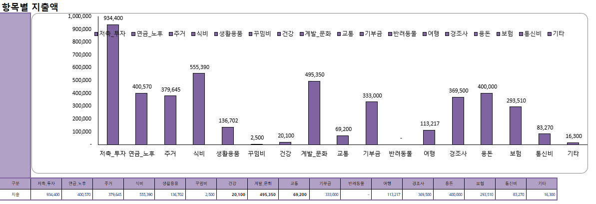 용돈, 보험, 통신비는 매일 고정으로 나간다.