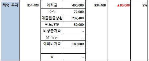 저축&투자라고 쓰지만, 예적금은 남편 내년도 학비로 바로 사용할 예정이고, 예비비는 매달 나가는 경조금이다.