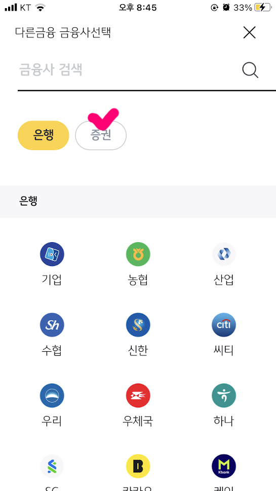 5. 다음 페이지가 뜨면 '증권'을 누른다.