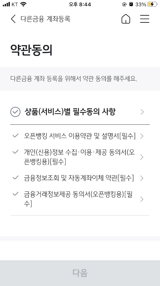 9. 다른 금융탭을 눌러, 오픈뱅킹으로 등록된 계좌리스트를 연다.