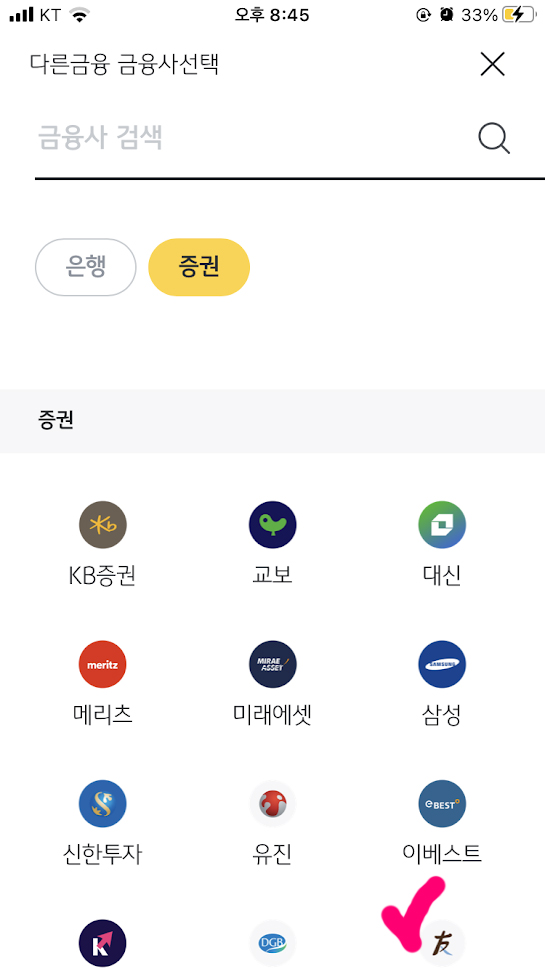 6. 한국투자증권을 찾아 누른다.
