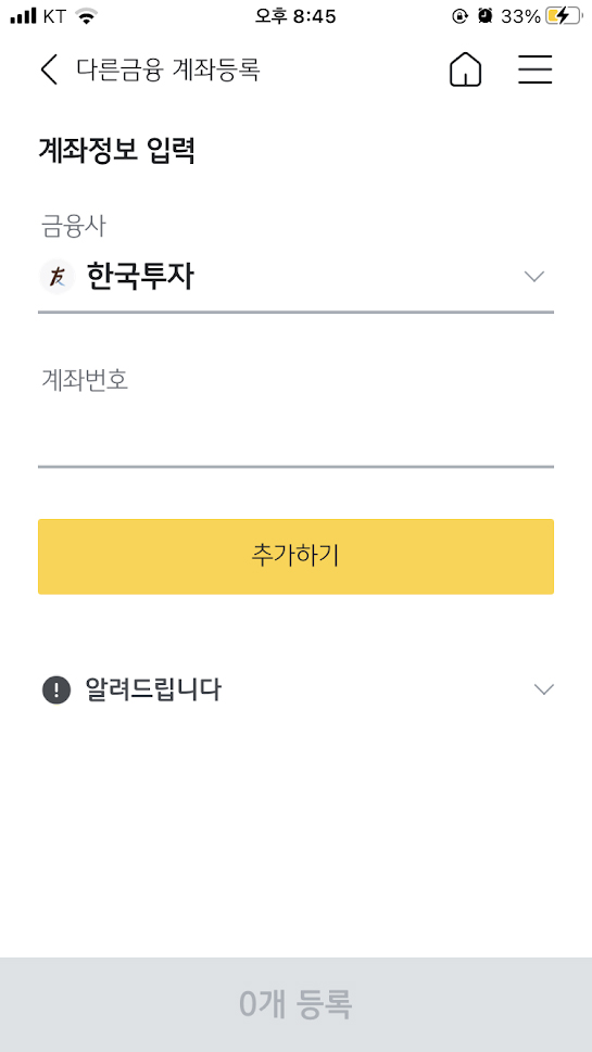 7. 한국투자증권 계좌번호를 입력한다.