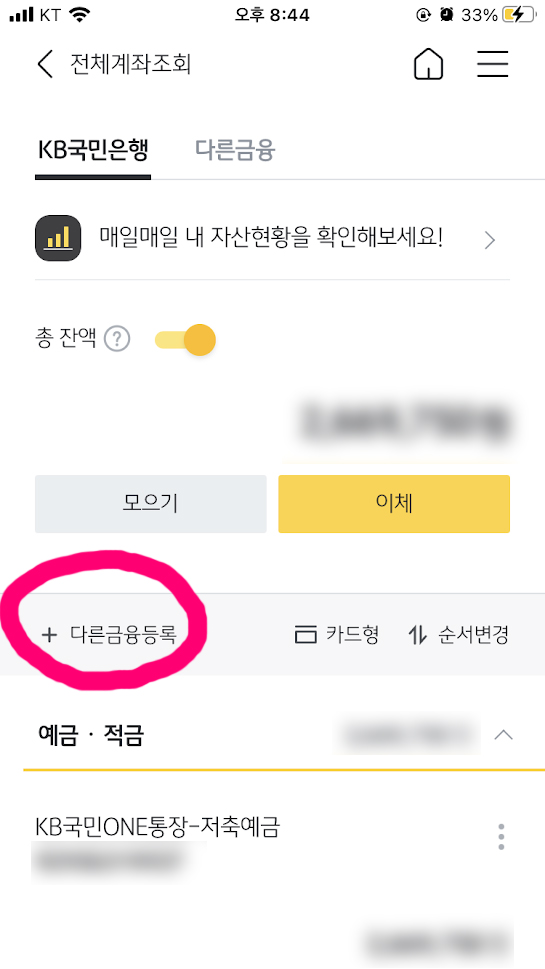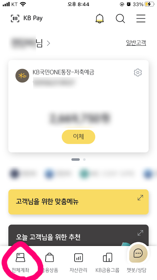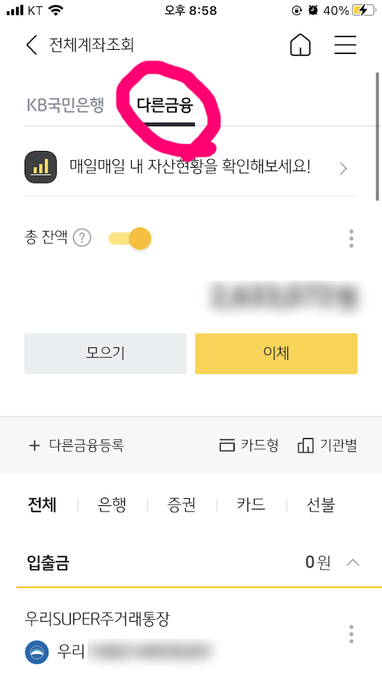 - 맨 하단 '전체계좌'를 누른다