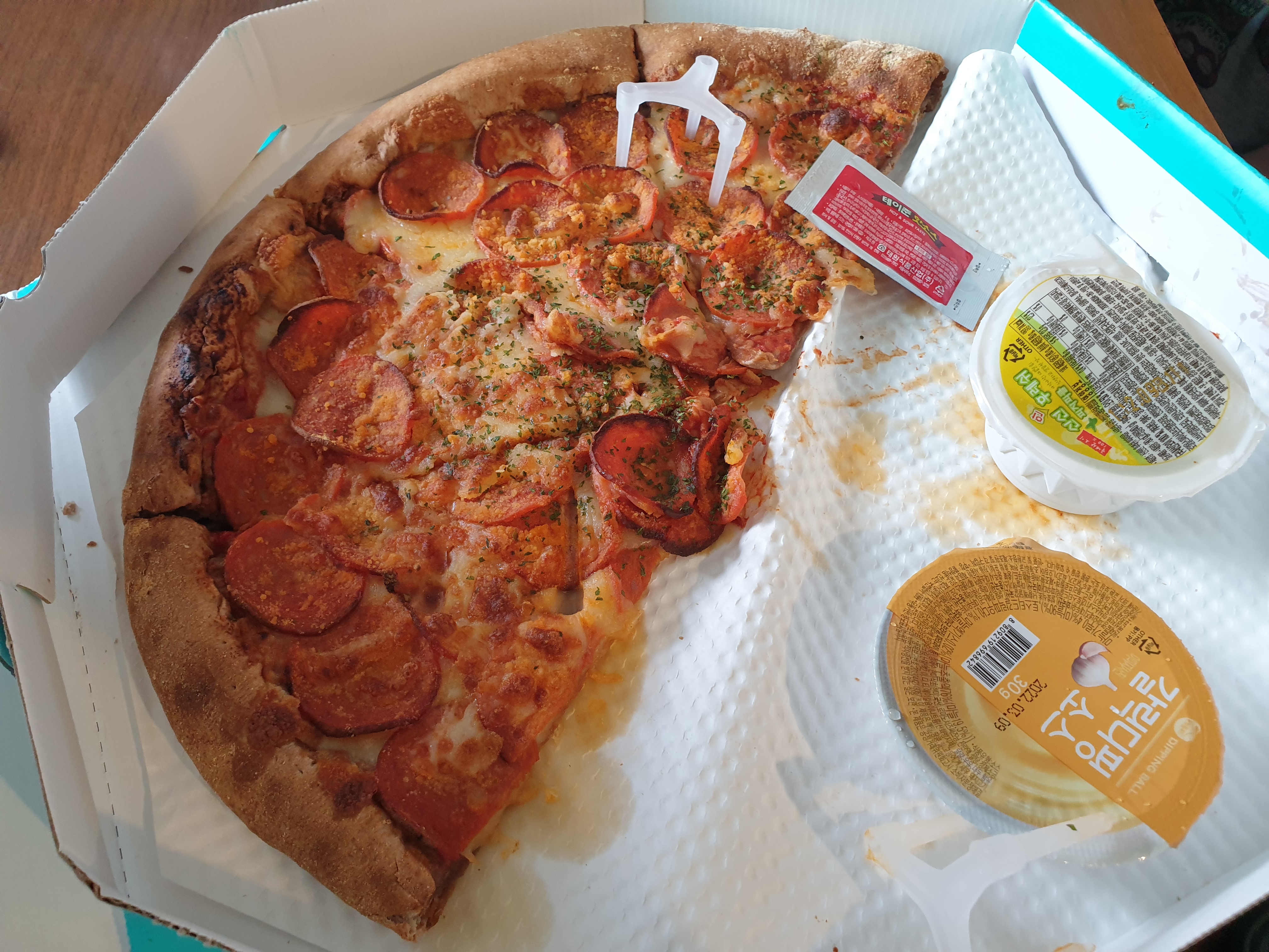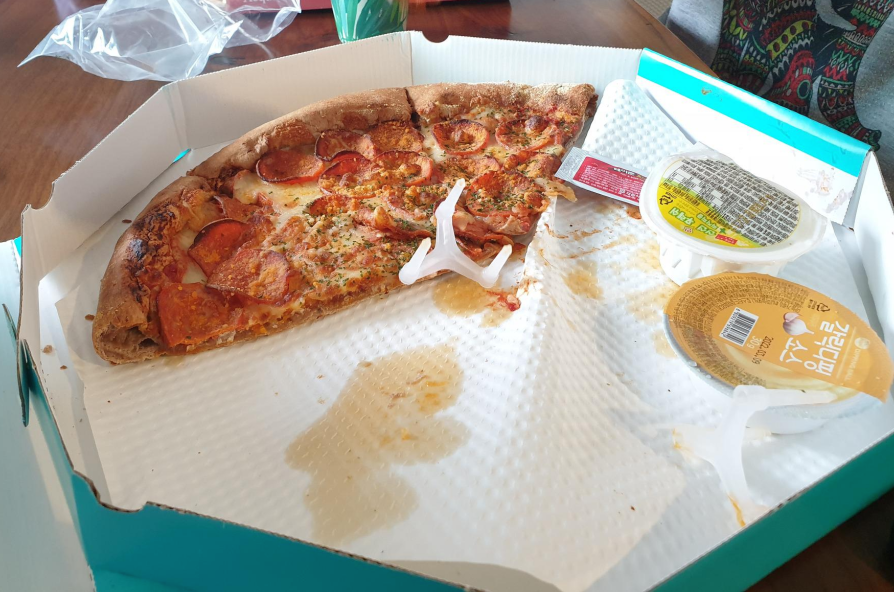 너무 저렴한 피자는 다음날 차갑게 먹으면 하드보드지 먹는 맛 & 느낌일 때가 있는데, 피자 선생 피자는 여전히 피자맛이었다.