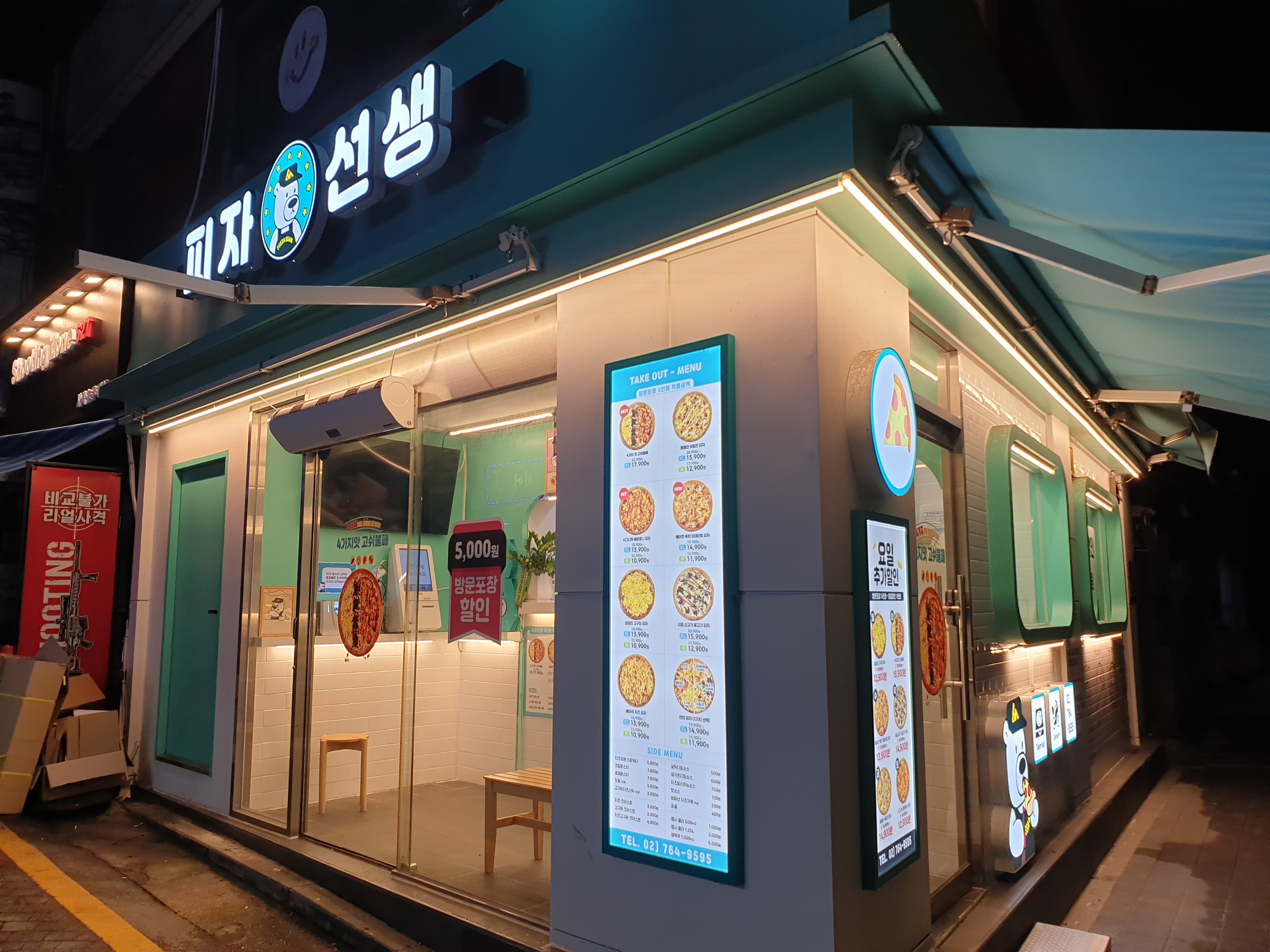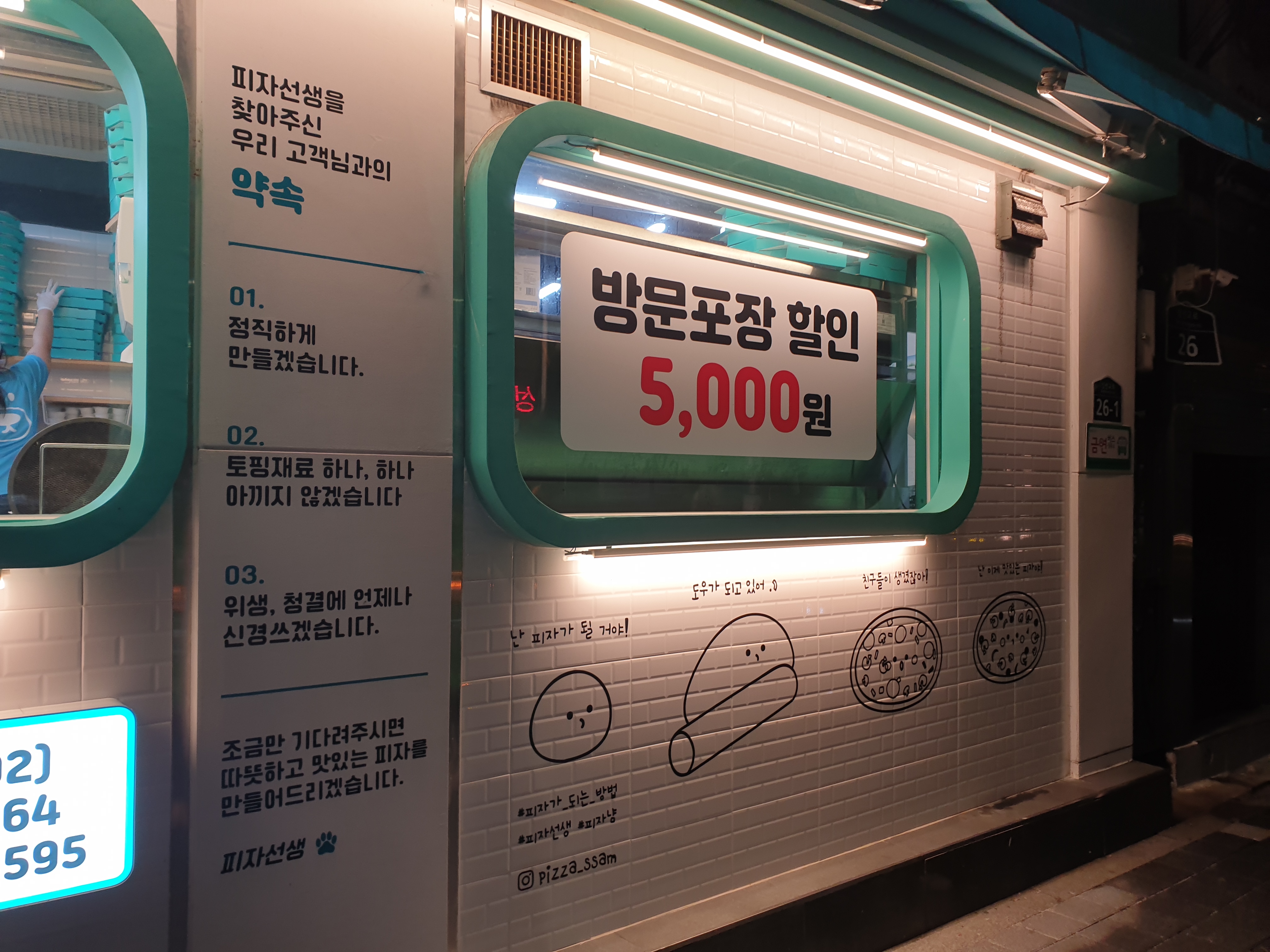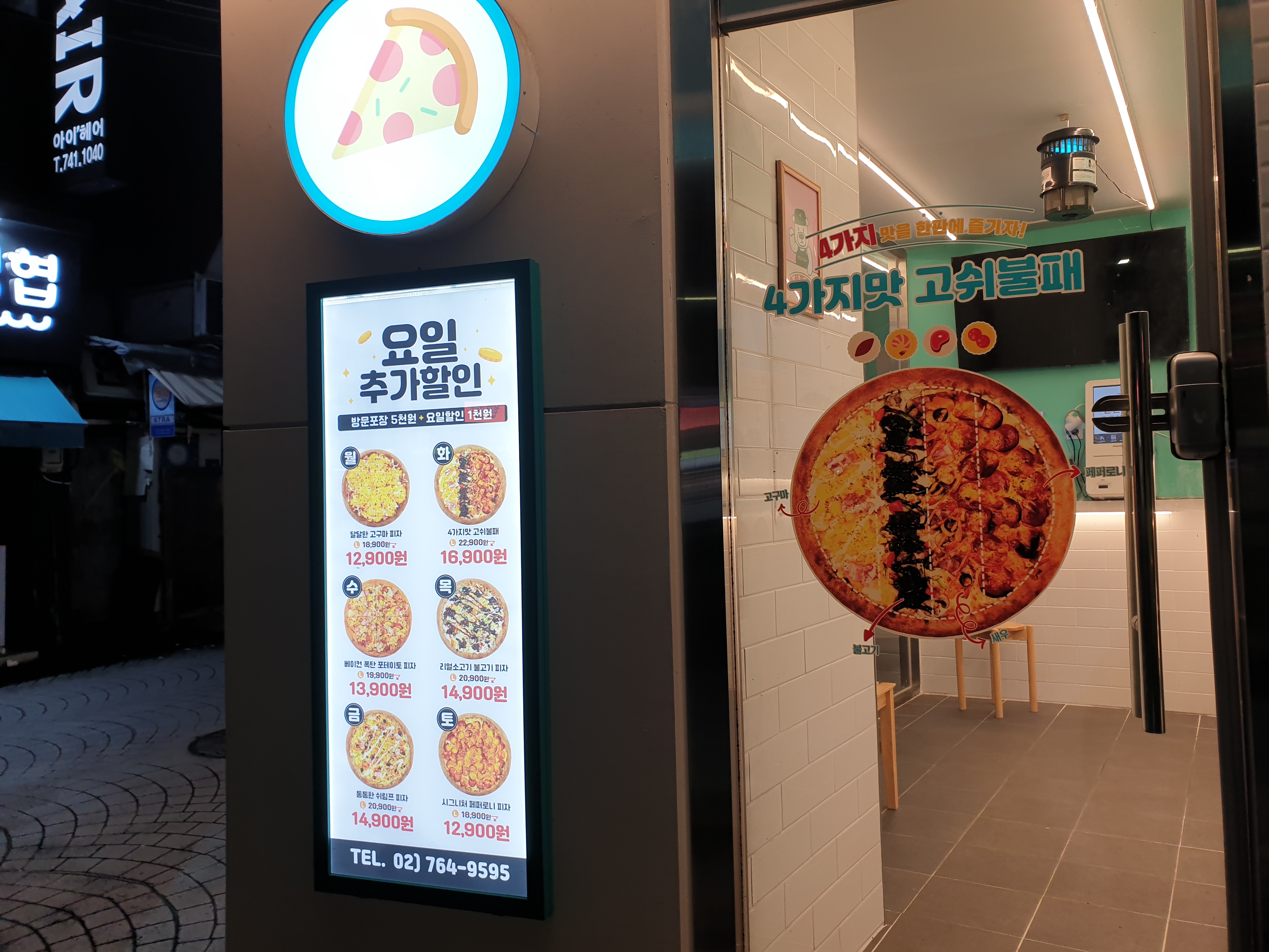 거의 10시가 다 되어 갔을 때 피자선생에 들어갔는데, 몇 시까지 영업하시냐고 하니 새벽 2시? 까지 하신다고 했다. 그 밤에 알바생도 3명이나 있었고, 몇 분 뒤 점장 또는 매니저로 보이는 분까지 한 명 더 오셨다. 새벽까지 여는 피자 집이 흔치 않은데. 새벽 시장을 공략하는 걸까? 이 또한 괜찮은 전략이다.