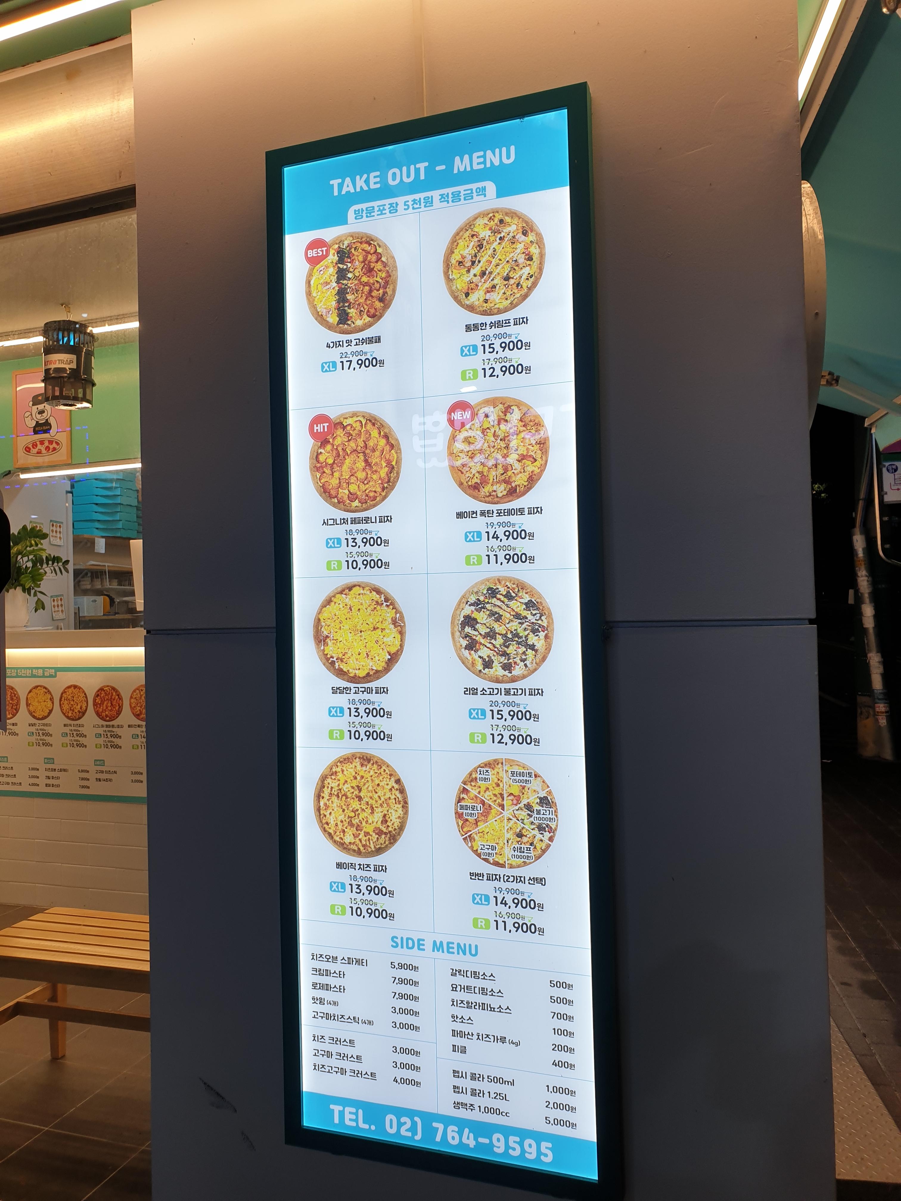피자선생은 처음보는 브랜드였는데, 빨간색 계열을 사용한 올드스쿨 스타일의 타 피자집과는 다르게 파란색과 민트색으로 가게 브랜딩을 한 점이 굉장히 신선하고 독특하다는 생각이 들었다.