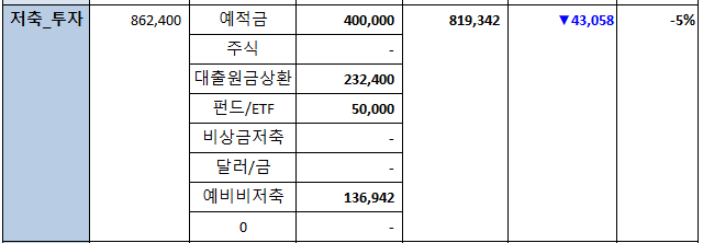 총 819,342원을 저축했다. 하지만 저중에 예적금 40만원은 다음 학기 남편의 학비로 쓰일 예정이다.