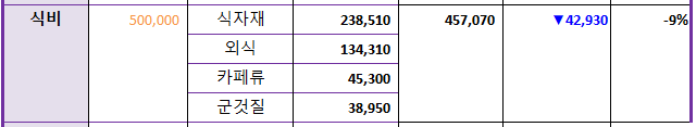 이렇게 토요일에 일정을 소화하면 월요일 출근을 위해 하루는 쉬어줘야 하므로, 일요일에는 죽은듯 집에서 푸욱 쉰다. 기특하게도 이번 달 지출관리는 전반적으로 잘 되었다. 특히 '식비'를 초과 지출하지 않은 것을 스스로 칭찬해본다.