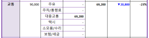 어디서 지출을 줄였는지 항목별로 한 번 살펴볼까?