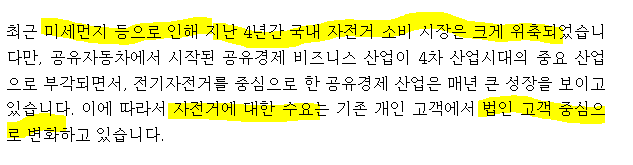 알톤스포츠 말로는 국내기업들 중 유일하게 대량 차제 생산을 할 수 있는 자가공장을 운영하고 있어서, 이를 활용해 열심히 영업을 하고 있다고 한다. 개인 고객에서 법인 중심 고객으로 아예 타겟층을 바꾸어 열심히 이런저런 계약을 많이 따내면 앞으로 이익을 볼 수 있을지 않을까?