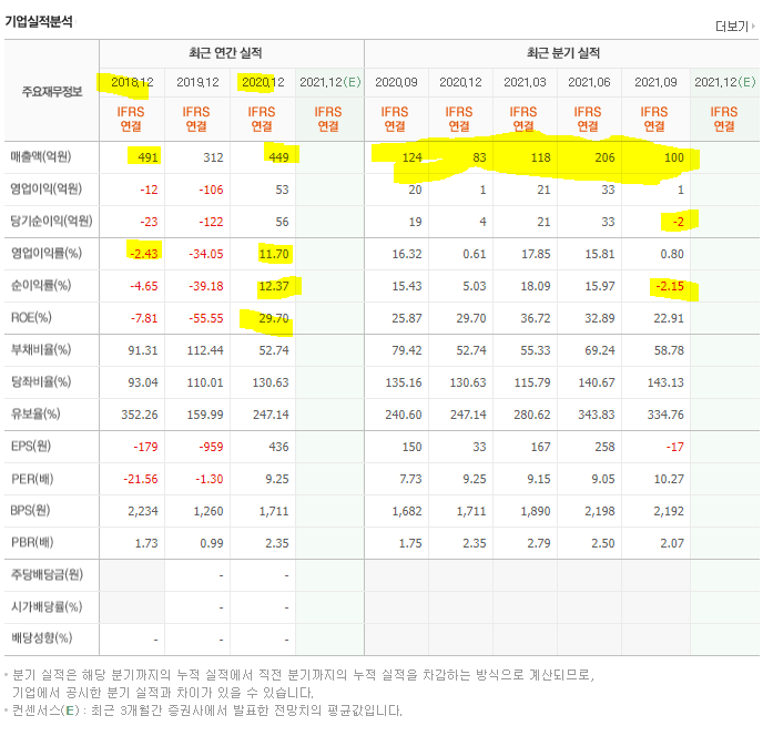 지난 몇 년간 순이익이 계속 마이너스였던 것. 매 년, 매 분기 매출액은 매우 들쑥날쑥하다. 이러니 알톤스포츠 주식이 인기가 없구나...ㅠㅠ 시가총액도 매우 작아서 더 인기가 없는 것 같다.