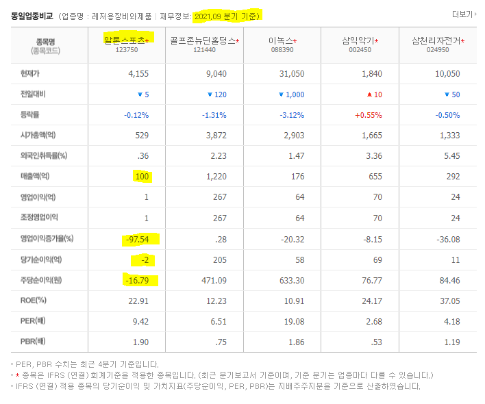 동일업종 내에서 비교해봐도 알톤스포츠나 삼천리 자전거나, 알톤스포츠의 실질 주인인 이녹스나 고전을 면치 못하고 있는 것 같다.