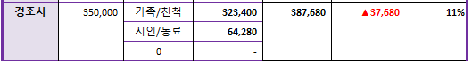 12월의 경조사 지출은 모두 크리스마스 관련이다. 친구들을 집으로 초대해 함게 저녁 식사를 한 비용, 작은 선물 준비 비용이 들었다. 언니 생일이 있어서 스타벅스 기프트 카드를 보내줬고, 그 외에는 남편과 나의 크리스마스 선물 비용으로 지출되었다. 남편은 멋진 가죽 가방과 슈트리를 선물 받고 나는 파타고니아 멜빵청바지를 받았다.