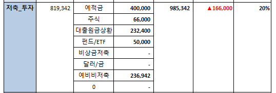 총 985,342원을 저축했다. 저중에 예적금 40만원은 남편의 학비로 쓰일 예정이다.