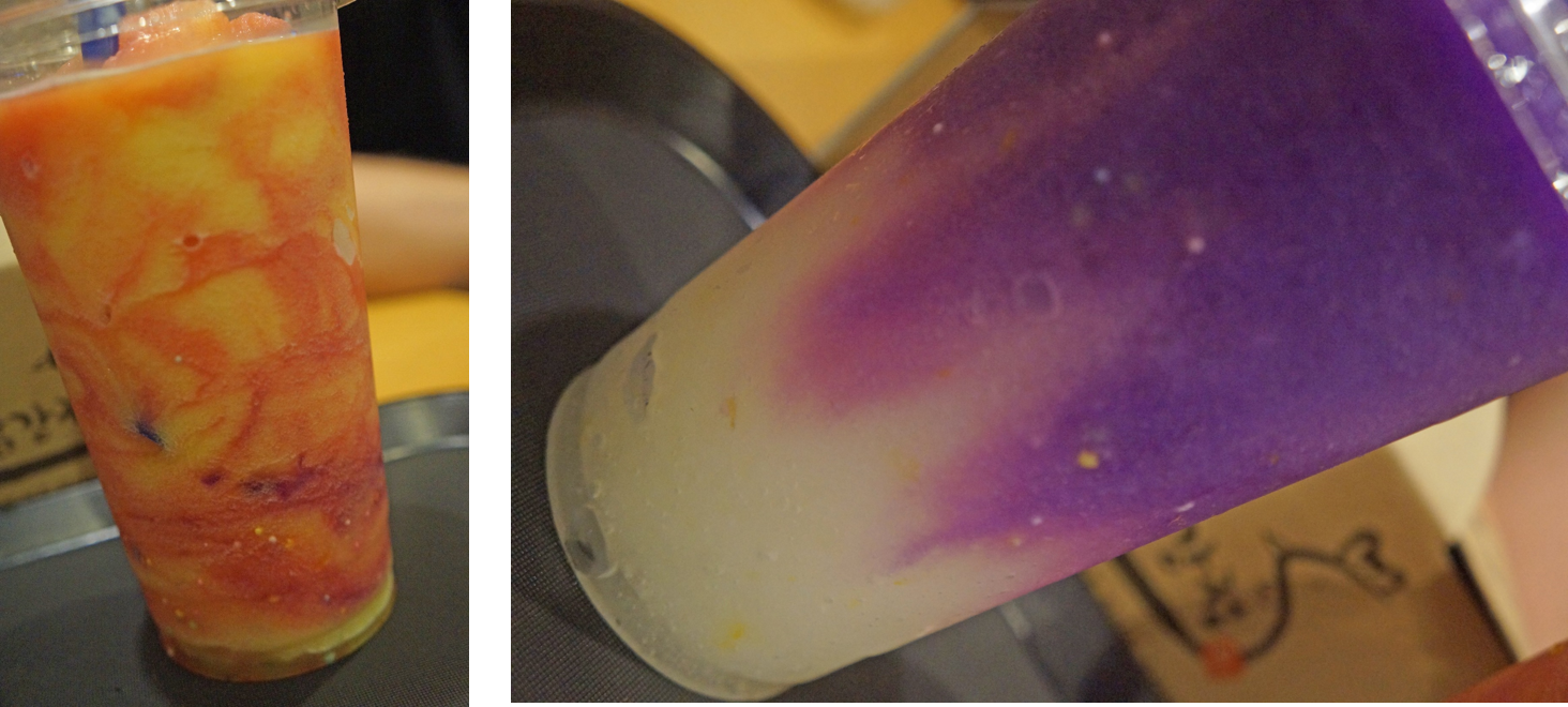 오늘 주문해본 음료는, 예쁘다고 소문난 갤럭시치노! 갤럭시치노는 종류가 2개가 있는데, 궁금해서 둘 다 시켜봤다.