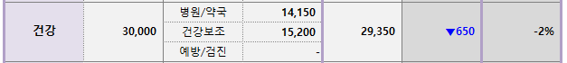 남편이 이빈후과 예약이 잡혀있는 달이라서 미리 적절한 예산을 잡아 놓았다. 덕분에 초과 지출은 없었다.