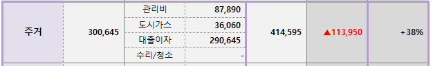 주거 예산을 왜 30만원으로 잡았는지 모르겠다. 특히나 1월에는 두 달에 한 번 결제되는 수도요금이 나가는 날인데... 예산 대비 113,950원이 초과되었다.