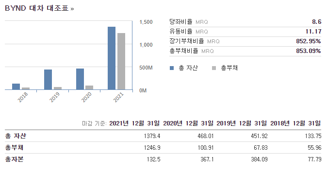 비욘드 미트 총 자산 & 총부채