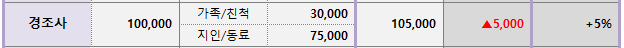 지인 결혼식이 있어서 축의금을 내고, 형부 생일 선물을 사서 75,000원의 경조사 지출이 있었다.