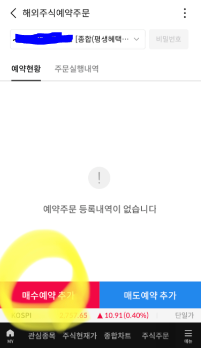 다음 페이지로 넘어오면 하단에 빨간 버튼 ‘매수예약 추가’를 누른다.