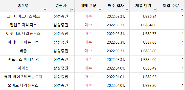 삼성증권에서 해외주식 예약주문으로 열심히 매수를 시도한 결과 이번주에는 총 9개의 주식을 매수했다.