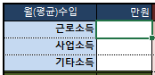 - 월급 받는 월급쟁이라면 근로소득에 숫자를 적어 넣습니다. 매월 통장에 찍히는 월급을 적어 넣으면 됩니다.