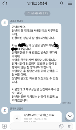 서울시 영테크 상담사를 만나 1회 차 상담을 받은 과정과 그 후기를 들려드립니다.