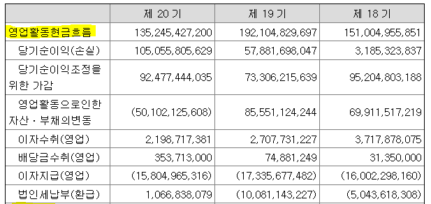 * 잉여현금흐름 = 영업활동으로 인한 현금흐름(Cash Flow from Operation) - 자본지출(Capital Expenditure)