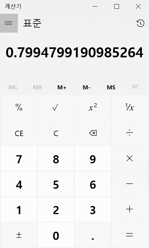 8. 계산기를 켜고 '마지막 완전충전 값 / 설계 용량 값' 을 계산해 배터리 수명을 알아낸다.