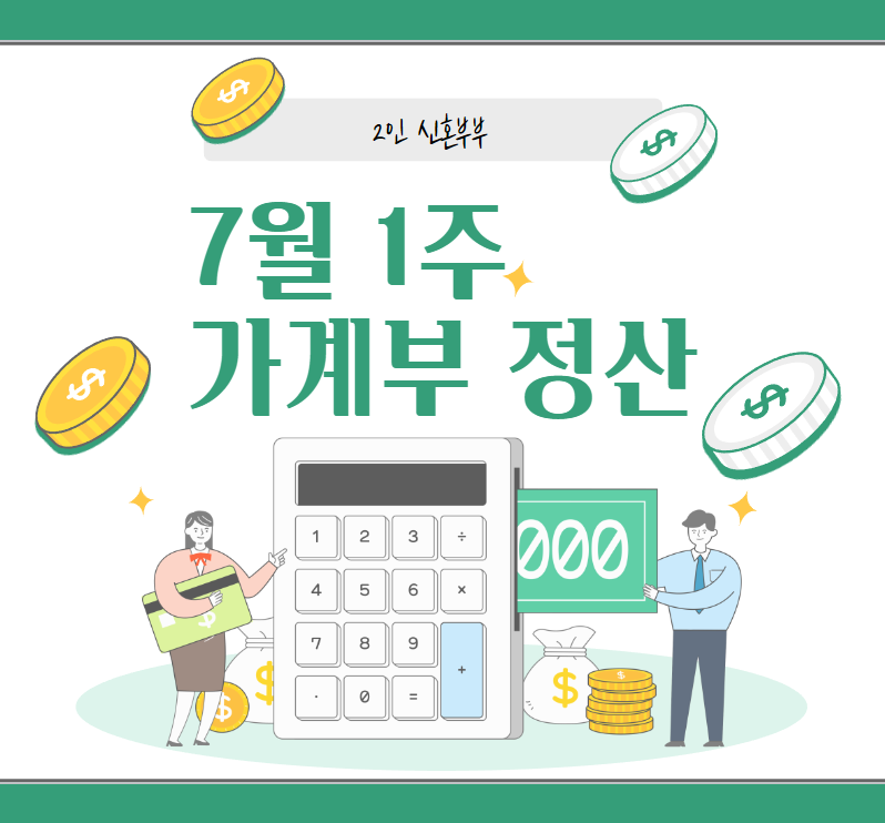 7월 2주는 남편이 5일동안 집을 떠나 생활 할 예정이라서 지출이 좀 적을 것으로 예상된다. 잘 살아보자.7월 2주 가계부로 돌아오겠다. 부디 적을 내용이 많지 않길 ^^