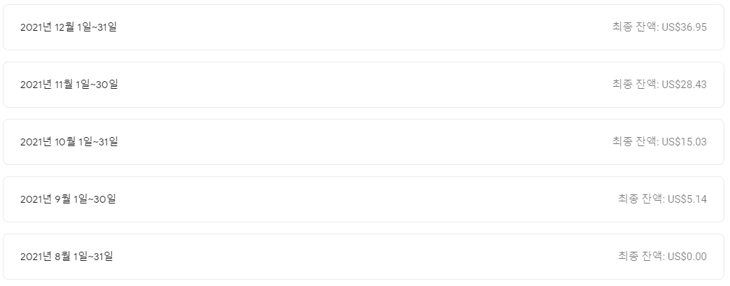2021년 월별 애드센스 수익금 정리