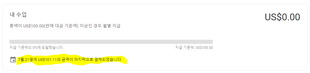 100달러를 달성하면 돈이 송금되도록 설정해 놓았는데 드디어 그날이 온 것이다.