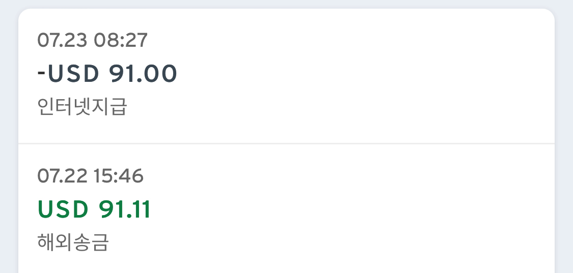 구글에서는 101.11달러를 보냈다고 하는데, 내 손에 쥐어진 돈은 91달러. 계산해 보니 송금수수료는 10달러다. 무슨 십일조도 아니고......이래서 사람들이 최소금액인 100달러가 아니라 더 많이 모았다가 한 번에 받는 것이구나...라고 깨달았다.