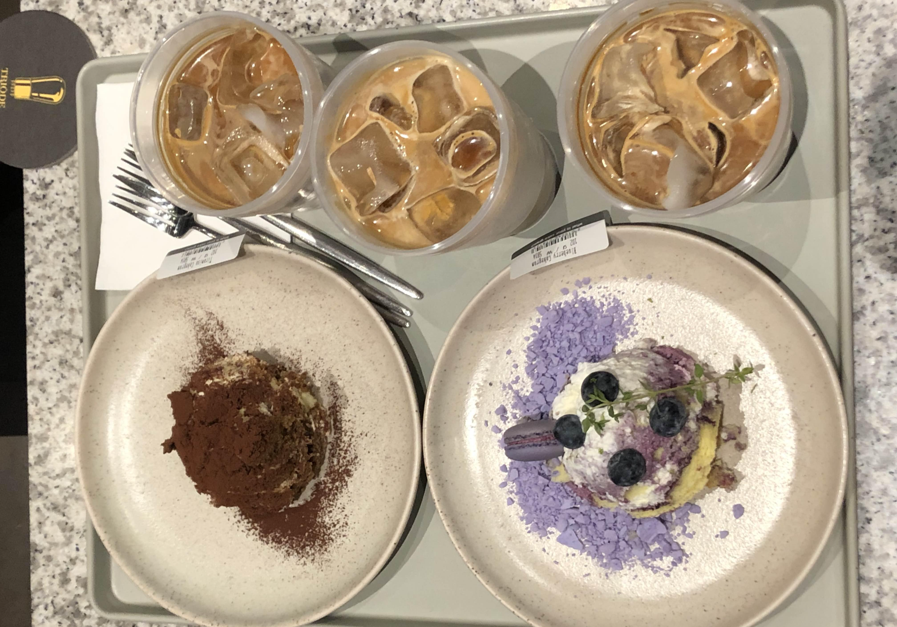 우리가 주문한 트리오드 그램(gram) 케이크와 카페라떼