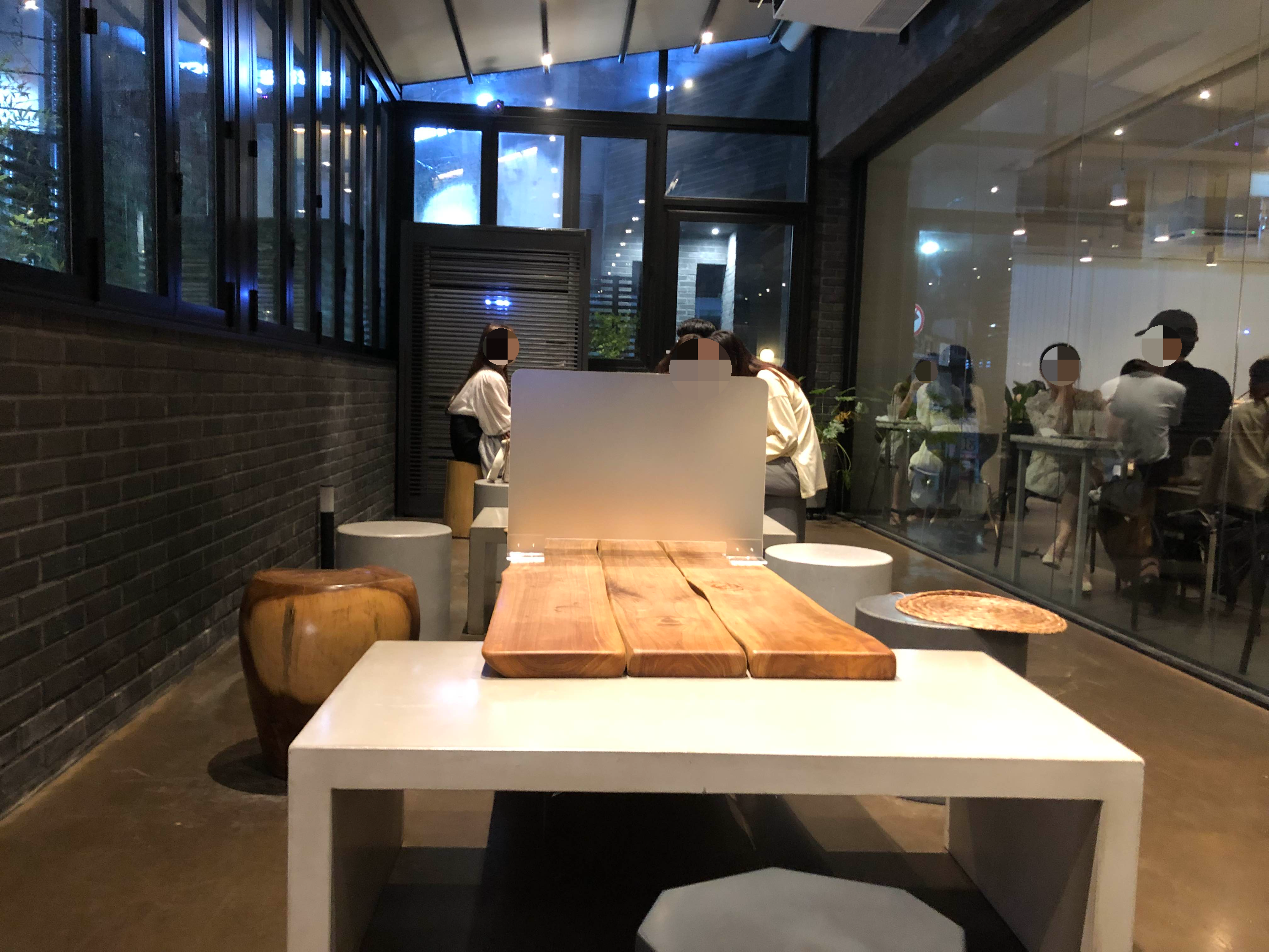 등받이가 있는 좌석은 주문받는 실내 쪽에 있고, 등받이가 없는 좌석은 바깥쪽(?)에 있다. 우리는 실내 좌석이 없어서 바깥쪽에 앉았는데, 오래 앉아 있기에는 정말 불편하다 ㅠㅠ