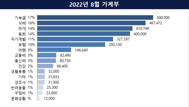 | 8월 첫째 주 지출, 외벌이 2인 가구 가계부 (0) | 2022.08.08 |