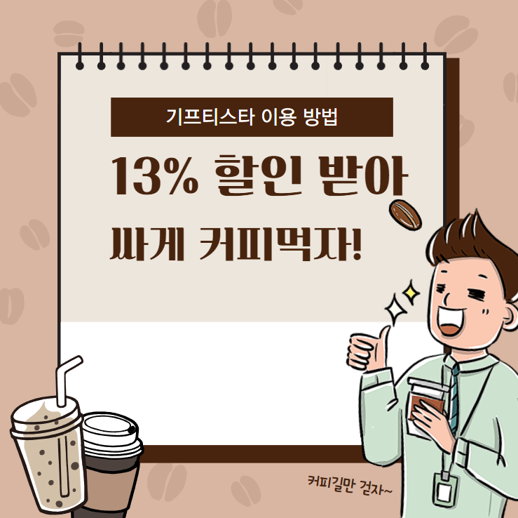 어차피 프랜차이즈 커피샵에 갈거라면, 조금 귀찮더라도 할인가에 기프티콘을 구매해서 생활비를 아끼는 슬기로운 지출생활을 해보자.