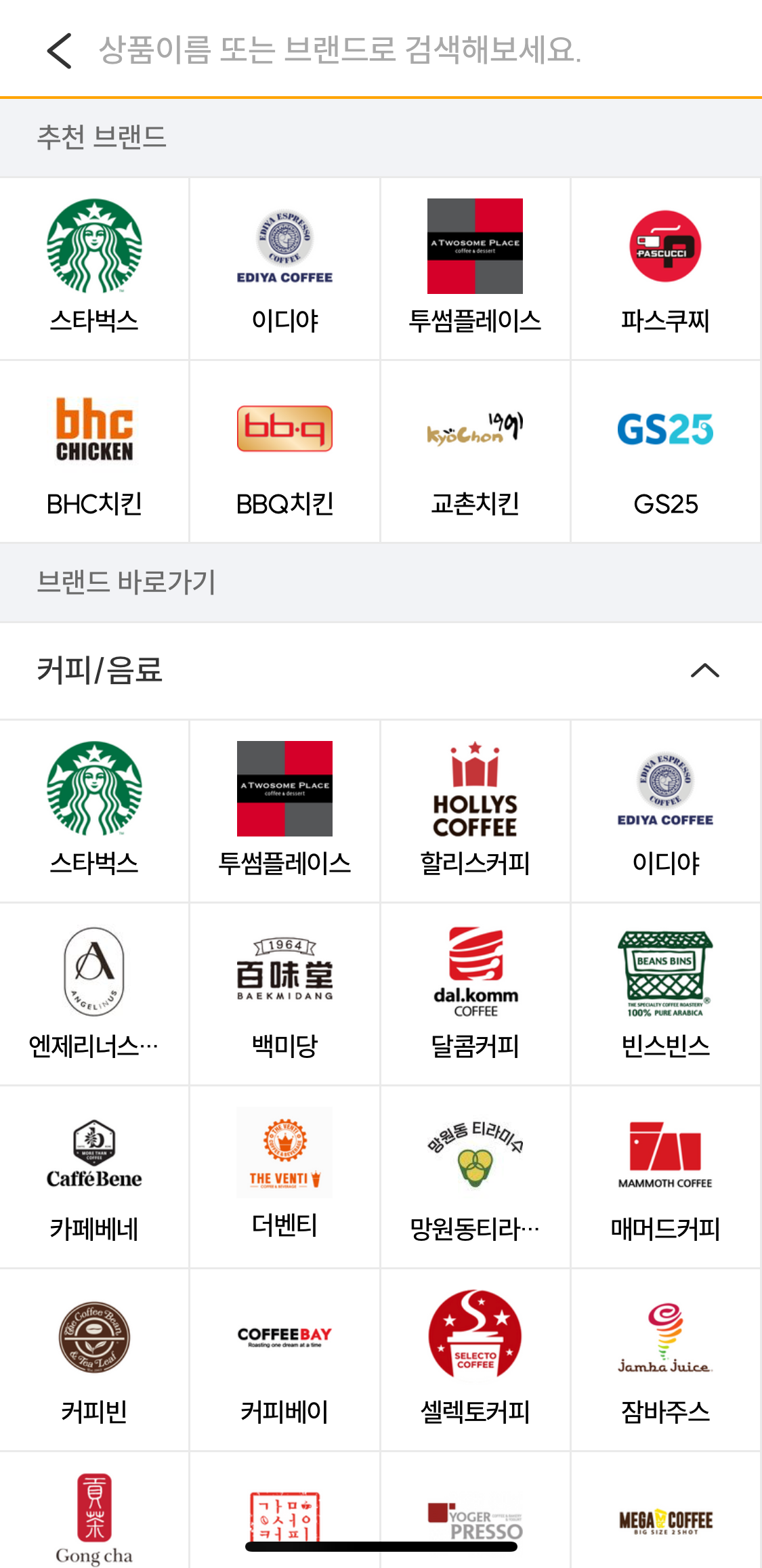 3. 할인가에 구매하고 싶은 브랜드를 검색한다.
