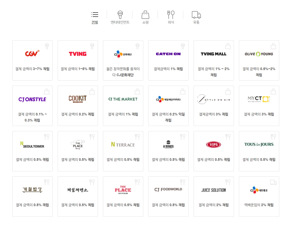 더 자세한 가맹점 정보 및 포인트 사용방법이 궁금하시다면 CJ ONE 홈페이지를 참고해주세요.