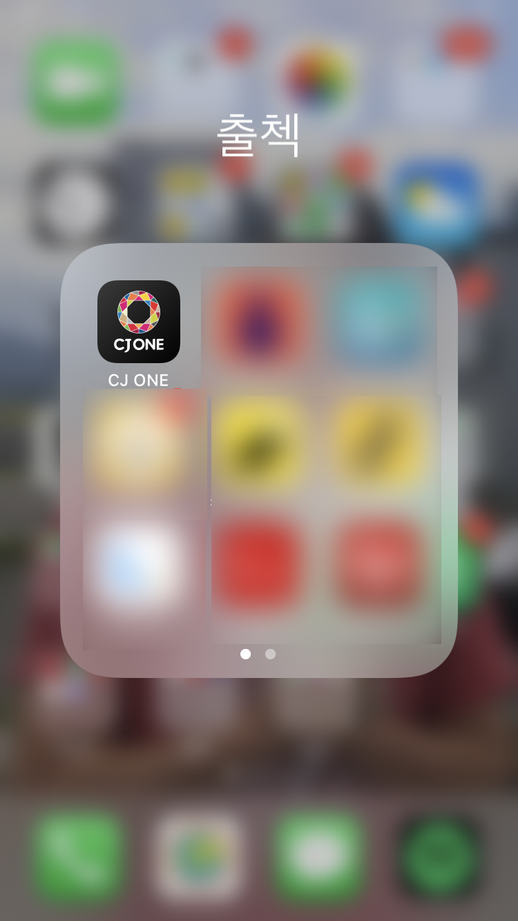 CJ ONE앱을 깔고 접속하시면, 메인 화면이 위의 사진처럼 뜨는데 빨간색 네모 박스가 쳐진 저 두 버튼을 누르면 각 페이지로 넘어갑니다.