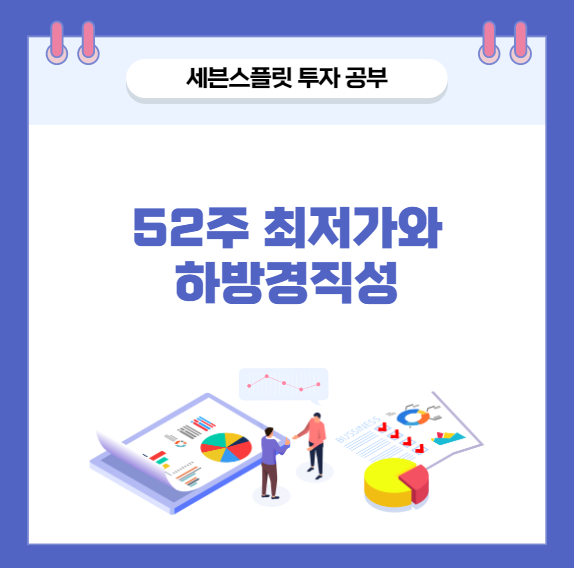 주가가 10,000원인 A기업의 주식의 52주 최저가는 7,000원이었다. 즉, 52주 최저가는 현재 주가에서 30%가 떨어진 주순이다. 이 주식의 하방 범위는 30%라고 볼 수 있는 것이다. 즉, 손실 가능성이 30% 이내라고 생각할 수 있다. 1만원의 주식이 7천 원 보다 더 떨어질 가능성은 낮다고 예측할 수 있다.