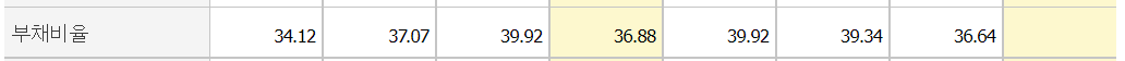 삼성전자는 매해 꾸준히 30% 중후반대 부채비율을 유지하고 있다.