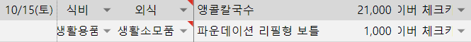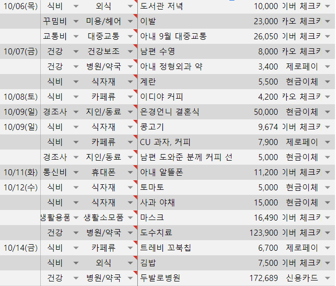 그럼 10월 첫째주, 둘째 주 가계부 리뷰를 시작한다.