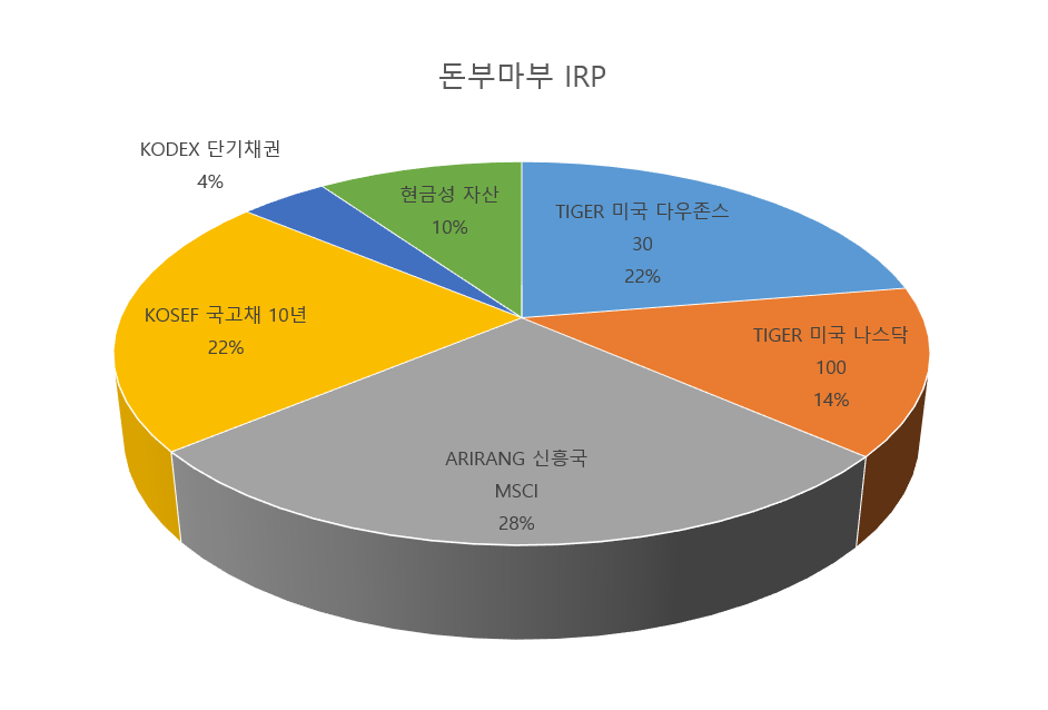 앞으로도 IRP계좌에 계속 추가 납입을 하면서 포트폴리오대로 상품별 투자비율을 유지해 나갈 예정이다. 55살을 바라보며!