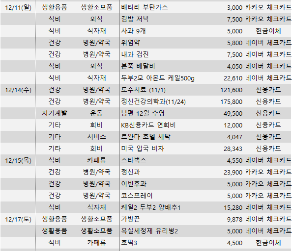 그럼 12월 셋째주 가계부 리뷰, 시작!