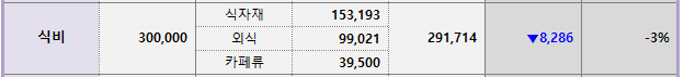 오마낫! 식비가 8,286원이 남았다. 이번 주 외식 지출은 남편 혼자서 김밥천국에서 김밥 사 먹은 것과, 갑자기 나에게 위염이 생겨서 기프티콘으로 죽 시켜 먹느라고 쓴 배달비밖에 없다.