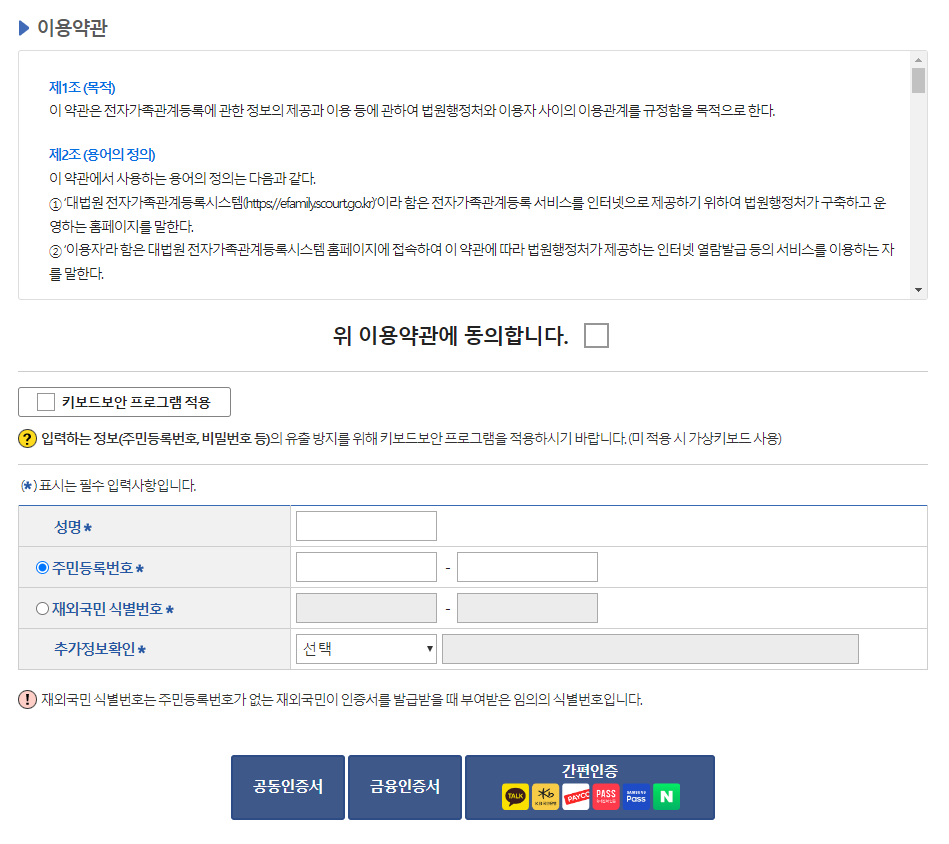 대한민국 법원 전자가족관계등록시스템EB[1/4]
