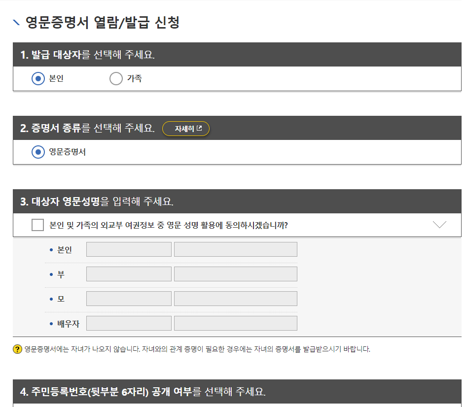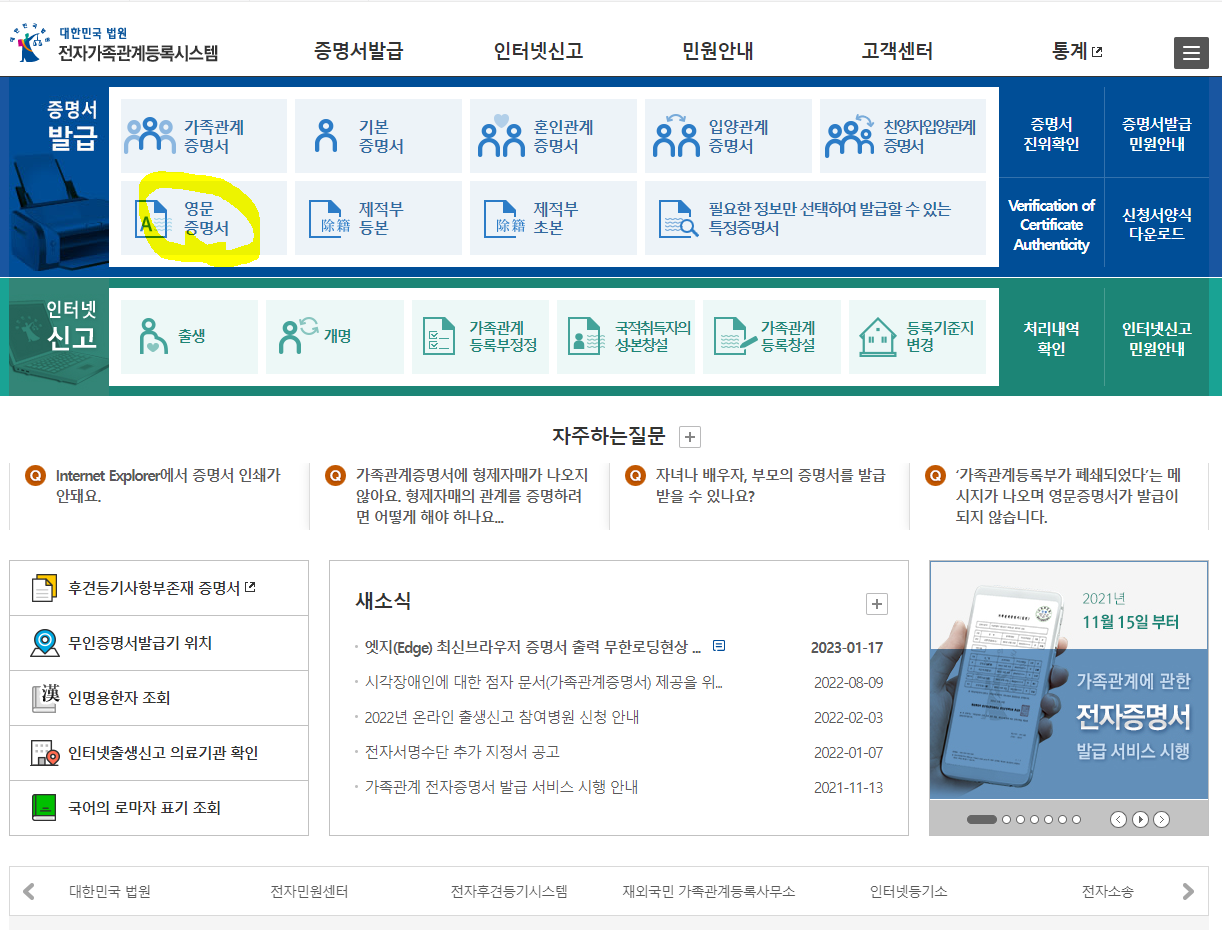 영문 가족관계증명서 발급 방법 총 정리